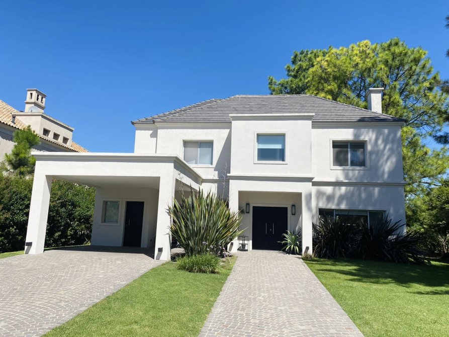 Casa ideal en barrio privado Saint Thomas Este con vista al golf y hermoso jardín con añosa arboleda. La propiedad cuenta con 7 AMBIENTES O MAS y 350m2 sobre lote de 840m2. Tiene u