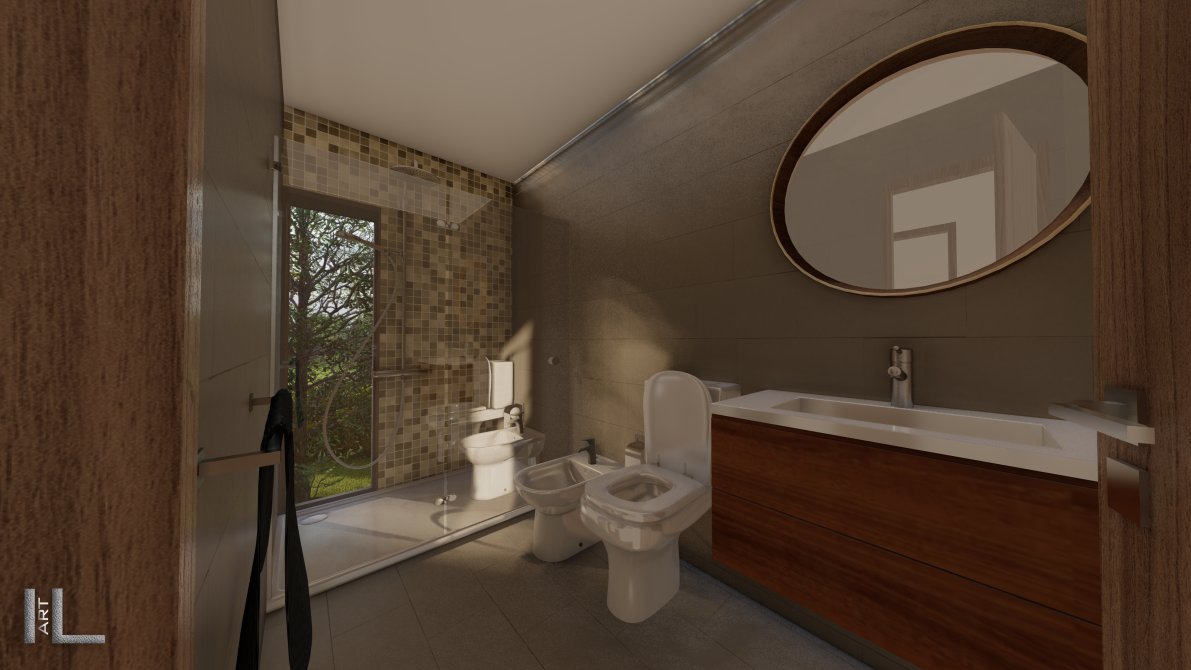 Inodoros con mochila,bidet y lavatorio marca ferrum . Ducha con griferia Monocomando.