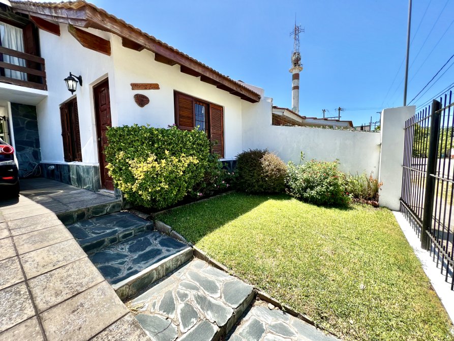 Vivienda tipo chalet en dos plantas, inmejorable ubicación, a 2 cuadras de la peatonal, a 3 cuadras de la playa (zona centro), a 1 cuadra de Av. San Martin, la vivienda esta compuesta por:  rejas sobre linea municipal, jardín al frente, entrada para dos vehículos uno de ellos cubierto, living comedor, cocina con mesada, bajo mesada, artefacto de cocina y termotanque, baño completo con ducha, lavadero, amplio jardín al fondo parquizado con parrilla, planta alta: dos dormitorios y baño completo.- Se entrega como en las fotos, TOTALMENTE AMOBLADO.-