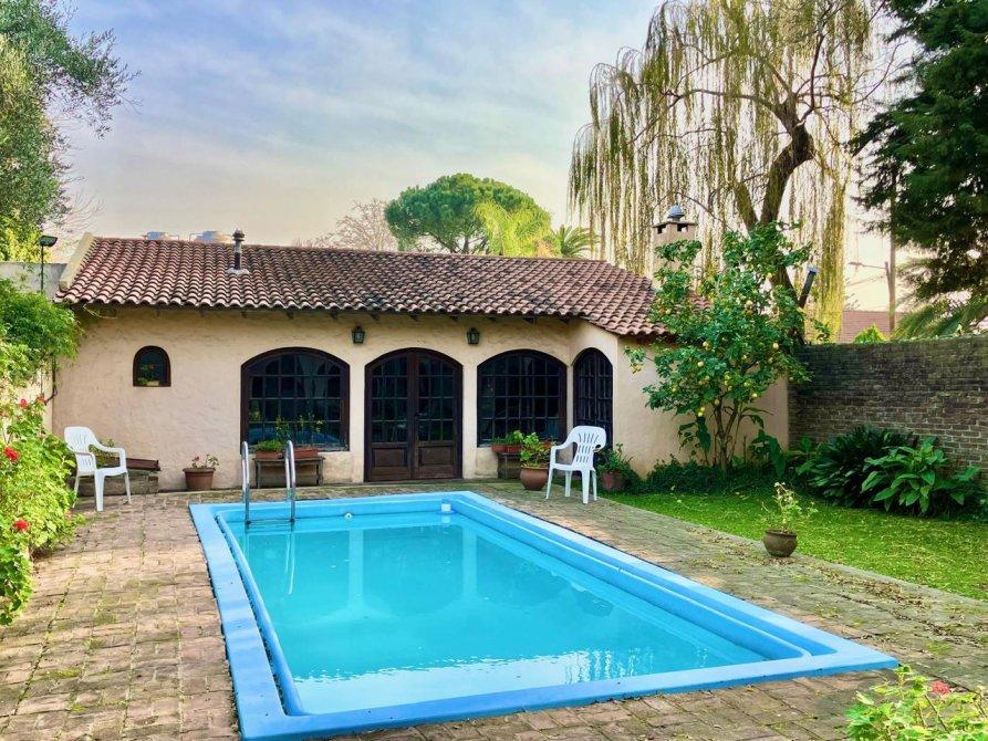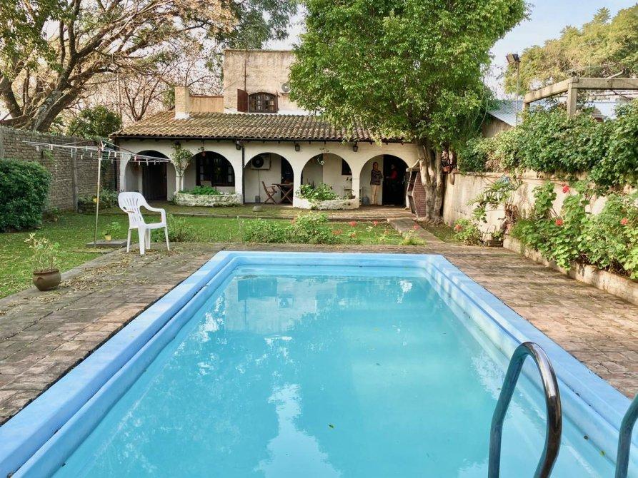 CHALET EN MUY BUEN ESTADO. PB: LIVING COMEDOR, COCINA COMEDOR, DORMITORIO PRINCIPAL EN SUITE CON VESTIDOR, TOILLETE, SEGUNDO DORMITORIO O ESCRITORIO, LAVADERO CUBIERTO GALERIA AL FONDO, GARAGE, GRAN QUINCHO (50 M2), BAÑO CON DUCHA DOBLE, CUARTO DE ENSERES, PILETA DE NATACION DE 3.5 X 7. PA: DOS DORMITORIOS, BAÑO