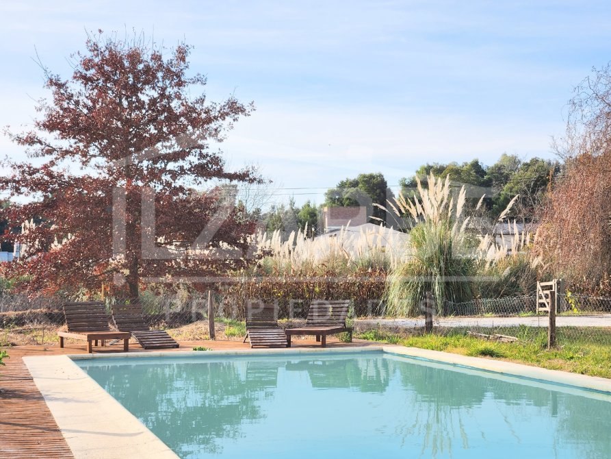 Pileta (de hormigón, de 12,50mts x 5mts; y en cuánto a su profundidad, de 1,40mts a 2,10mts; además: cercada, con deck de madera y motor)