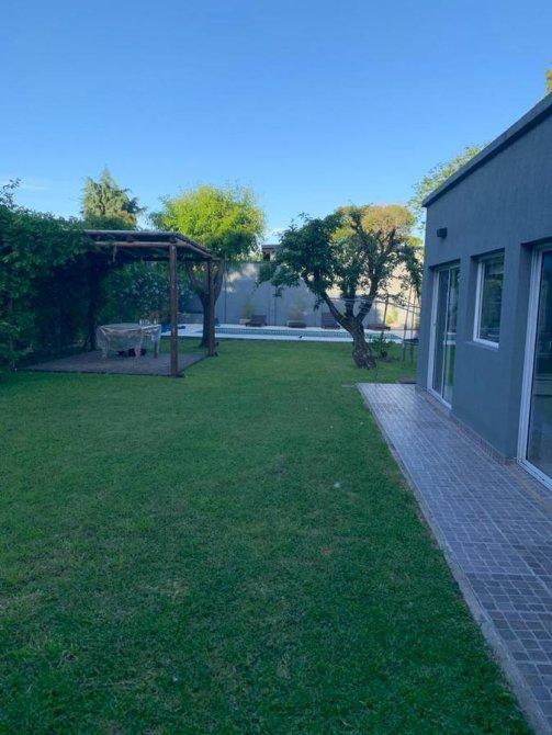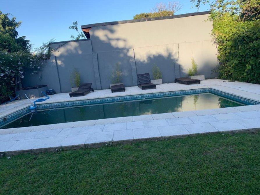 Hermoso Chalet desarrollado en dos plantas con jardín al frente entrada para varios autos, Planta Baja: Living comedor muy amplio, baño completo, cocina comedor diario con muebles bajos y alacenas completo, garaje cubierto para dos autos, amplio parque con piscina y quincho totalmente equipado, baño completo. Lavadero cubierto. PA: dos amplios dormitorios uno de ellos con vestidor, baño completo. La propiedad posee calefacción por radiadores y A/A individual en todos sus ambientes. Piscina con sistema de filtrado automático. Se encuentra en impecable estado. Digna de visitar.
