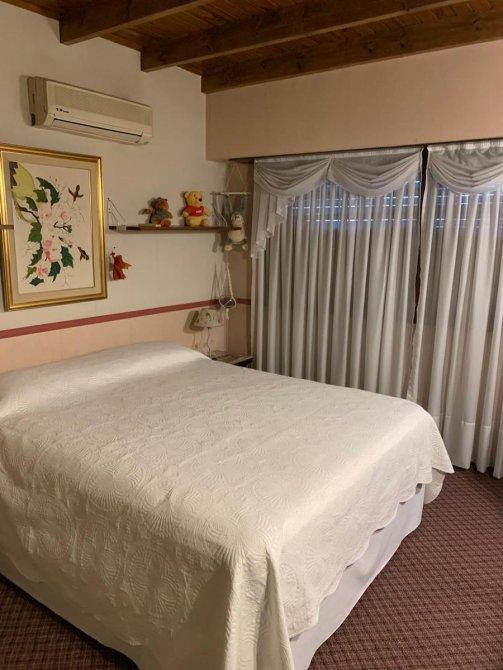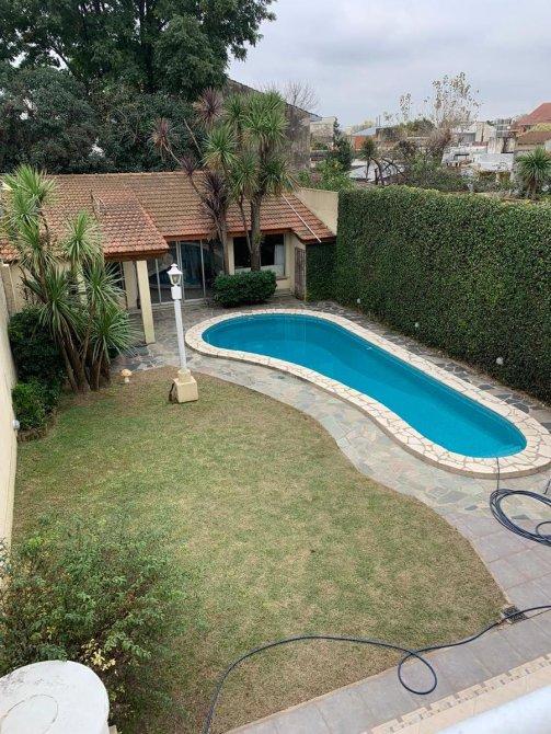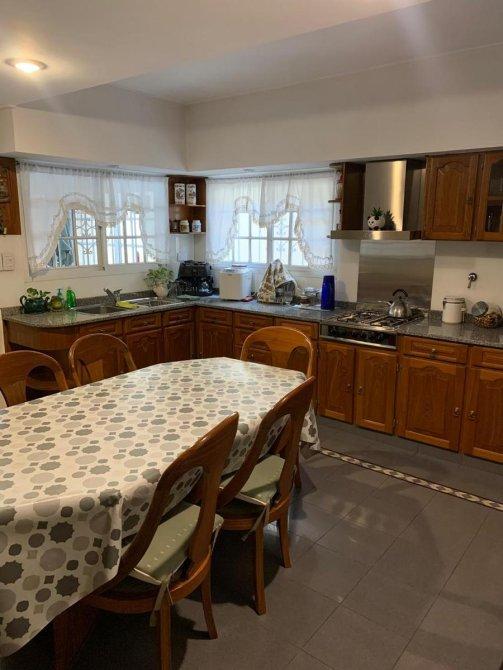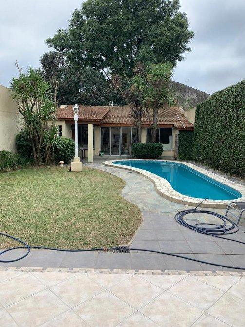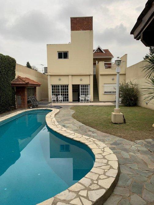 Chalet desarrollado en dos plantas de excelente construcción, Planta baja: Living comedor, cocina comedor diario con muebles bajo mesada y alacena en madera maciza, galería cubierta, baño completo, garaje para dos autos, parque con piscina y quincho con instalaciones completas. P. Alta: 4 dormitorios amplios todos con placar, uno en suite con vestidor, terraza con lavadero,