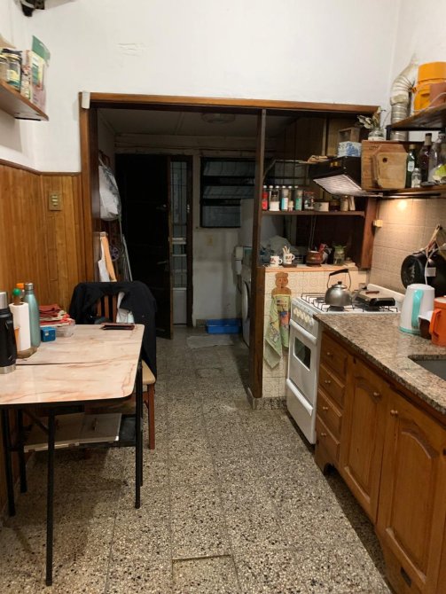 Cuenta con un pequeño local al frente y amplio jardin con entrada de auto al ingresar a la casa cuenta con hall recibidor, dos dormitorios, ante baño y baño completo,una abitación de guardado, cocina comedor ampliao con saida al patio compartido con departamento dos ambientes con techo de losa.