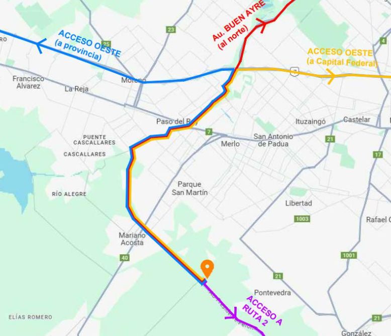 El predio se encuentra en un lugar clave en cuanto a logistica se refiere ya que esta emplazado frente al camino parque del Buen Ayre y su intersección con la ruta 1003 ex avda.Patricios, y a través de esta logra unir al partido y sus localidades con el resto del conurbano, ya que el Buen Ayre une a la Panamericana con la autovía 2 , en este tramo especificamente atraviesa los municipios de Merlo, La Matanza, Ezeiza, Presidente Peron, San Vicente, Florencio Varela, Berazategui, La Plata, cabe destacar que esta autopista conforma el tercer anillo que bordea a Caba, y une actualmente con tres carriles Panamericana con el Acceso Oeste en el tramo ejecutado y en el tramo en ejecución se extiende hasta la autovia 2 con tramos habilitados con una longitud total de 75 km aproximadamente. El Buen Ayre permite que el transporte de carga proveniente del Litoral, del Norte, y de Cuyo llegue al sur del conurbano, al Mercado Central y al Puerto de La Plata, que tiene en marcha un proyecto para ampliar su capacidad y absorver parte del trabajo del puerto de Capital.