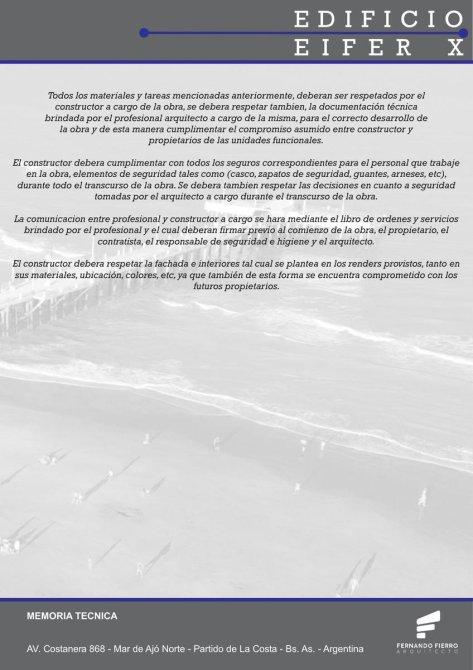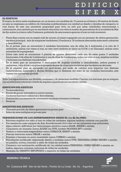 El mismo se ubica entre medianeras,en un terreno con medidas de 15 metros del frente y 40 metros de fondo. En este se emplazara un edificio de viviendas multifamiliares con calidad en diseño y detalles de categoria, lo cual hacen de este una excelente propiedad para vivir, no solo por estas cualidades mencionadas a continuación,sino también por su excelente ubicación con vista al muelle de pescadores de la localidad de Mar de Ajo, sobre la icónica calle Costanera, pudiendo de esta manera apreciar el mar en todo momento.