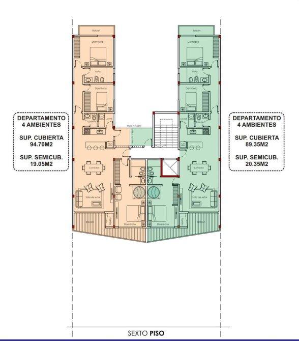 *Sexto piso: Dos semipisos de 4 ambientes*