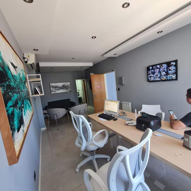Ingresando por el sector semicubierto vamos a encontrar un edificio de 300m2 destinado a oficinas, con sala de reuniones, 3 baños y cocina comedor. Toda la calefacción es por radiadores.