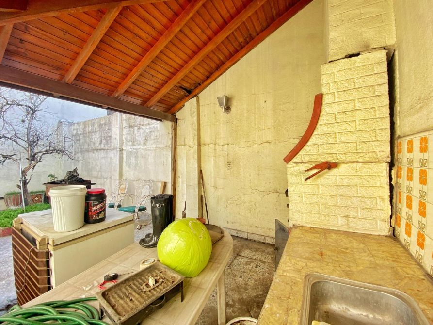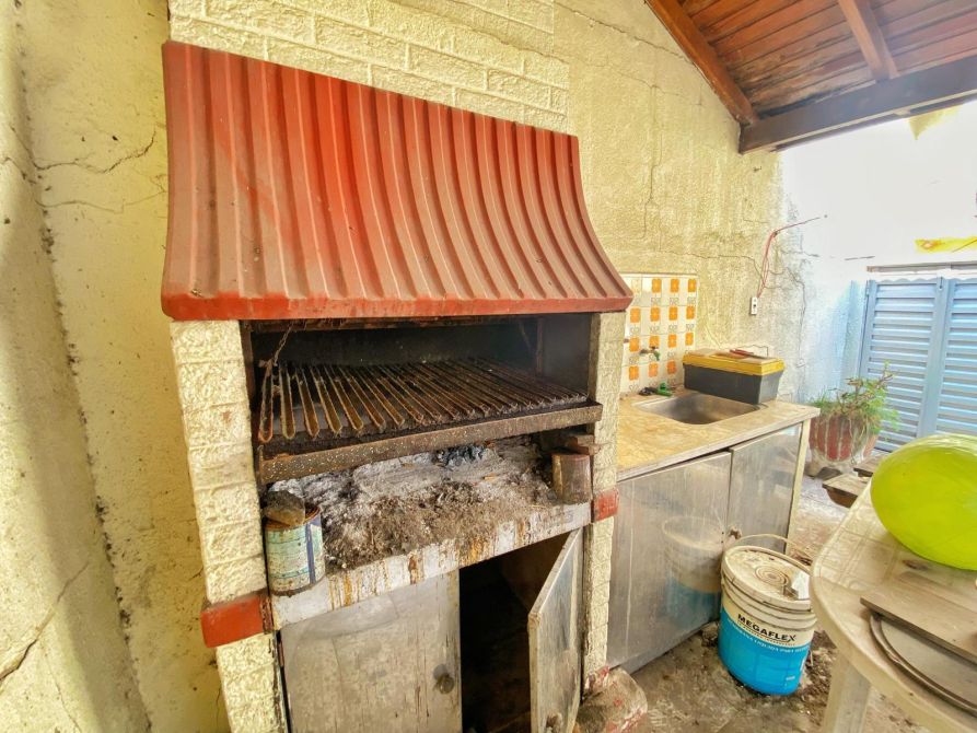 - Patio amplio con su parte descubierta y su parte cubierta, donde se encuentra una parrilla de material, una bacha, bajo mesada, todo ideal para generar un quincho.