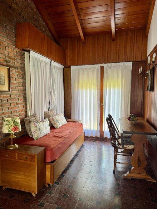 Sobre un entorno residencial, en el excelente barrio de Punta Mogotes, Mar del plata, se encuentra este Chalet construido sobre una sola planta.  Se compone de:  Amplio estar comedor ( con hogar a leños),  comedor en L,  2 dormitorios con placad, baño completo, cocina comedor, jardín,  habitación y baño de servicio,  garage pasante, parrilla  muy luminosa.   propiedad en buen estado.