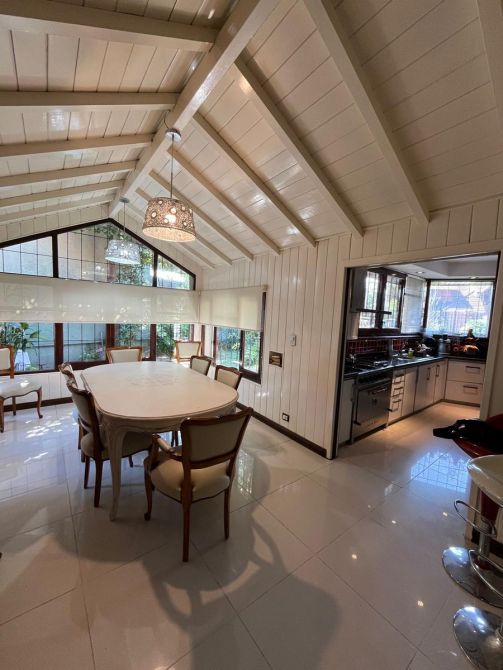 La casa cuenta con 4 habitaciones, de las cuales 2 son en suite y otra incluye un vestidor. Además, en el primer piso encontrarás una biblioteca con vista al exuberante jardín.