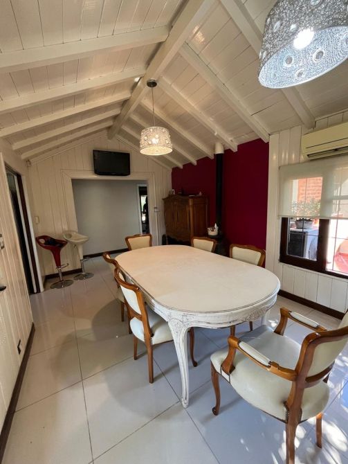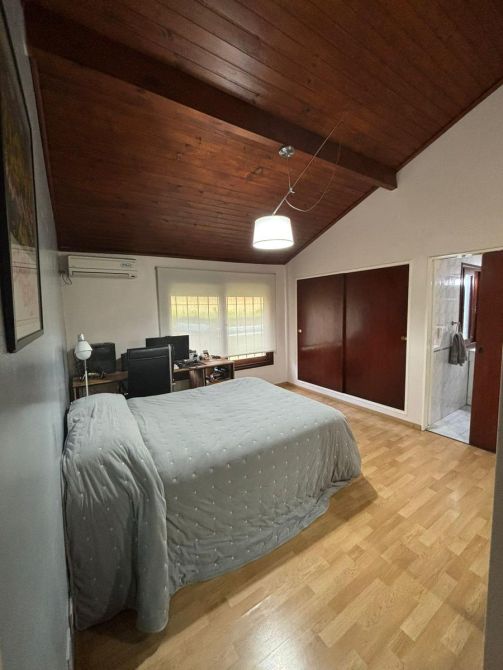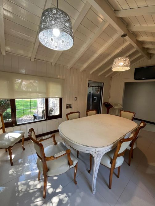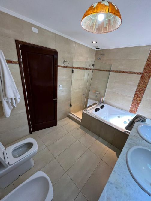 El baño principal presenta un toque de lujo con un relajante jacuzzi. La cocina, el living y el comedor diario están diseñados para la funcionalidad y la comodidad. Para los momentos de entretenimiento, la propiedad cuenta con un quincho equipado con parrilla y una sala de juegos. Calefaccion por Aire Acondionado.