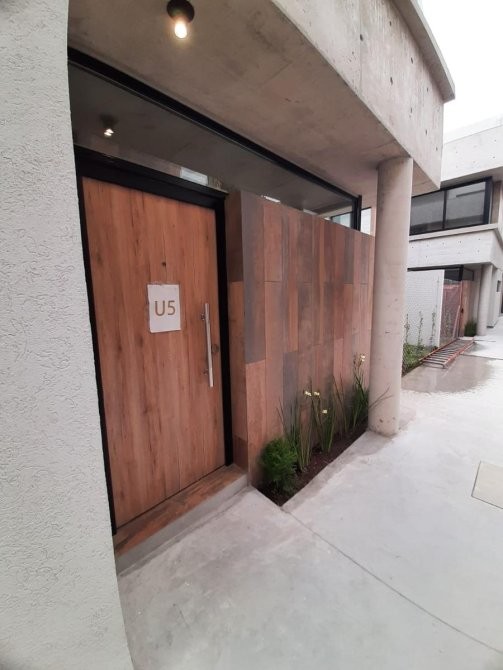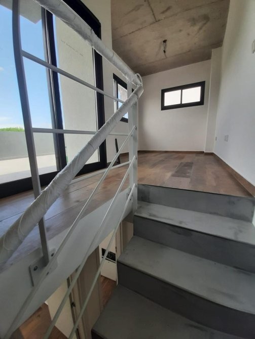 Toda la vivienda posee pisos de porcellanato símil madera de primera marca. Carpinterías de perfilería de aluminio negro con vidrios DVH.