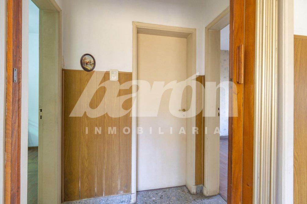 Por pasillo distribuidor, se accede a un baño completo con ducha y a dos dormitorios con pisos de parquet: uno con vista al frente, ventilador de techo y estufa de tiro balanceado, y otro con vista al patio.
