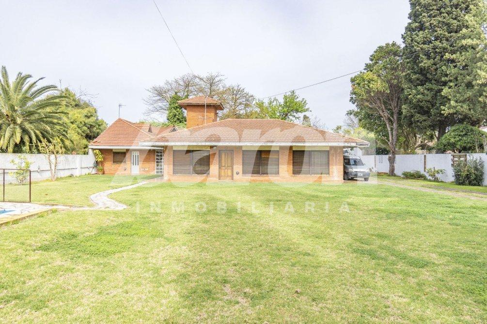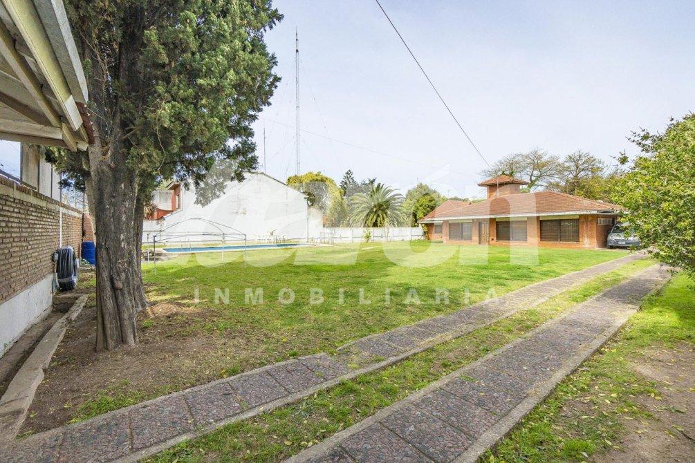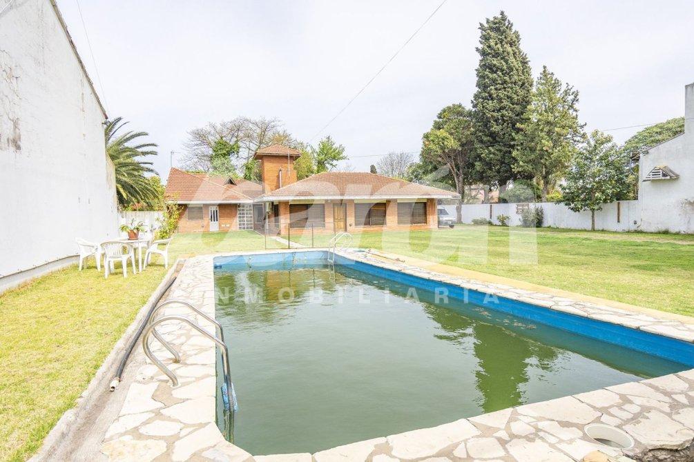 Al frente, mediante un portón automatizado, se accede a un amplio sector parquizado con una piscina de 60.000 litros, baño completo con ducha y espacio descubierto para aproximadamente ocho vehículos.