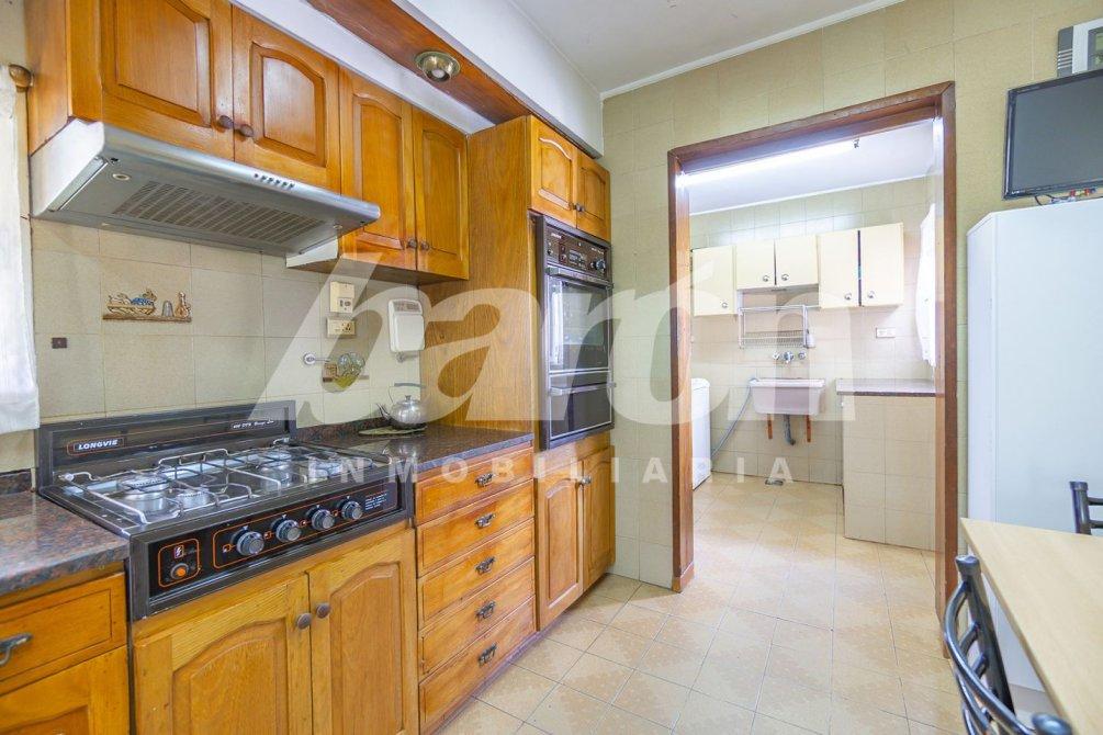 La cocina-comedor, de generosas dimensiones, es independiente y se encuentra equipada con muebles bajo y sobre mesada, horno empotrado, anafe a gas, extractor y una ventana que aporta excelente ventilación e iluminación natural. A través de un pasillo, se accede a una habitación en suite con baño completo con ducha.