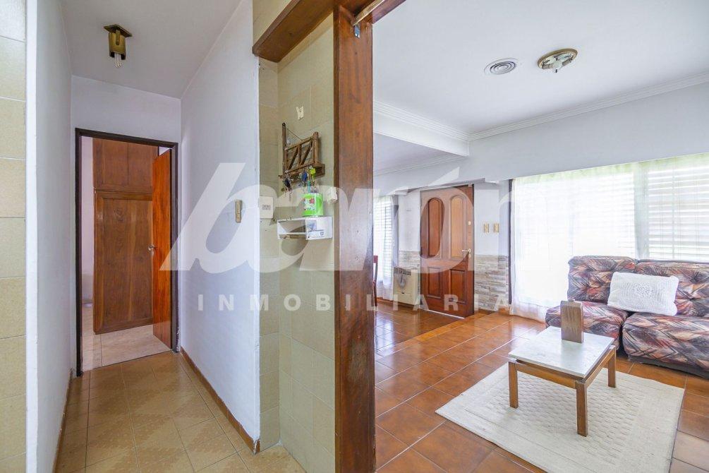 El ingreso principal nos recibe con un luminoso y confortable living-recepción con pisos cerámicos, que conecta mediante un pasillo distribuidor con dos dormitorios con placares empotrados -uno con vista al frente y el otro al patio trasero- y un baño completo con ducha y mampara.