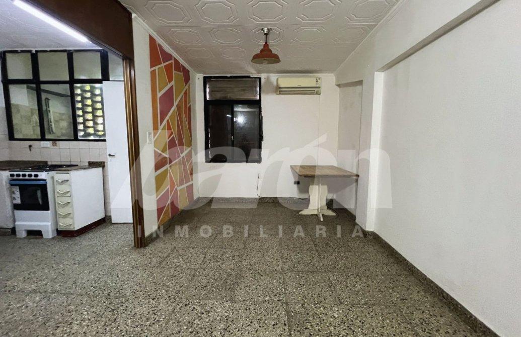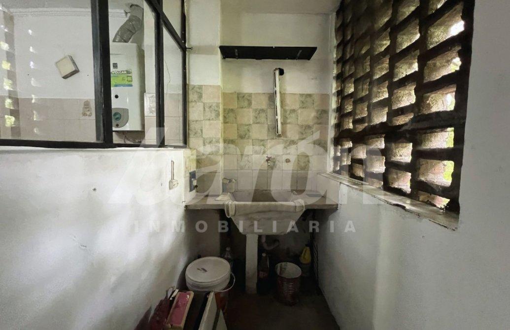 La cocina, integrada al área principal, cuenta con muebles bajo y sobre mesada a refaccionar, artefacto calefón y salida a un lavadero cubierto e independiente, lo que aporta mayor practicidad al desarrollo del espacio.