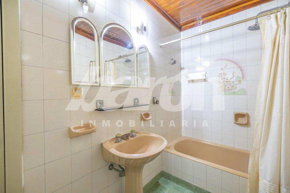 Mediante un pasillo distribuidor, se accede a un baño completo con bañera y a dos dormitorios, uno de ellos con pisos de parquet, y el otro con placard empotrado y pisos alfombrados, ambos de generosas dimensiones.