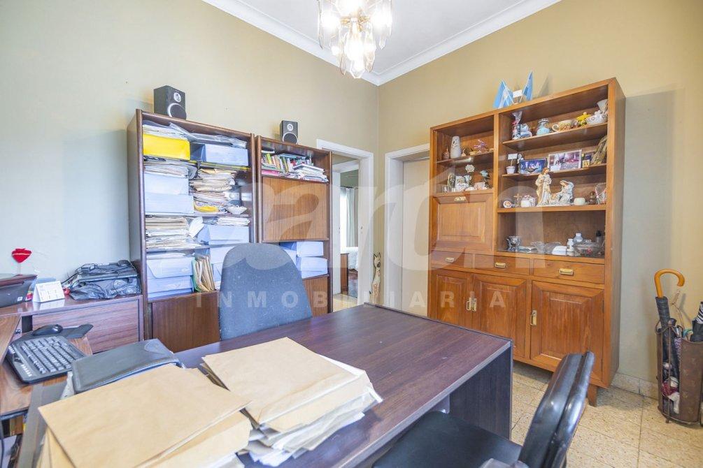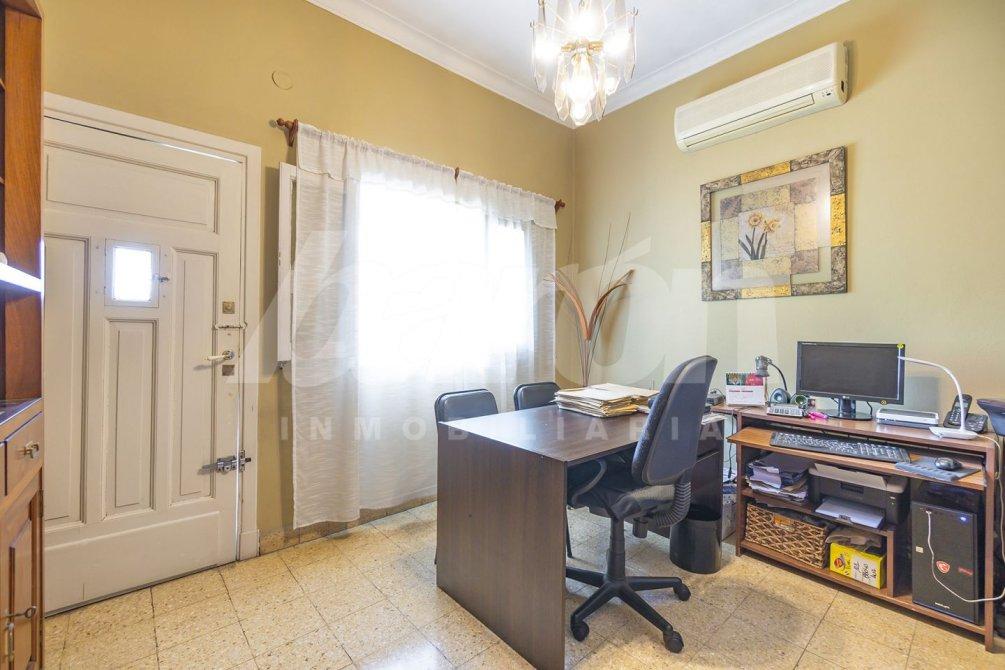 Al ingresar, se presenta un luminoso living con pisos de mosaico, actualmente utilizado como oficina, que se integra armoniosamente con el resto de los ambientes.