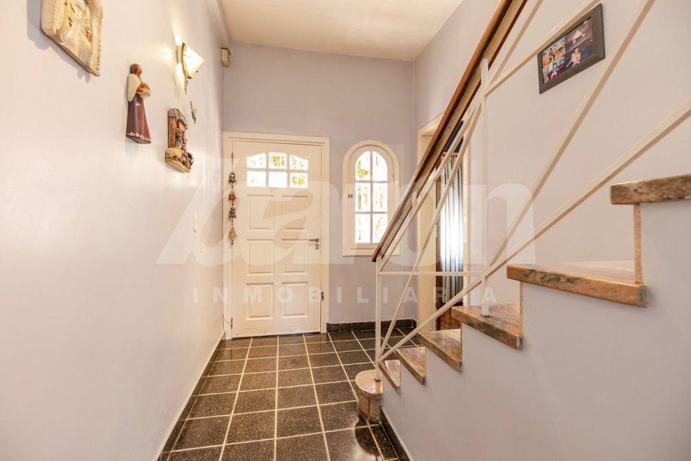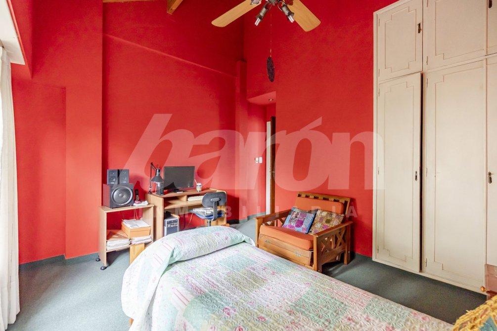 En la planta alta, a la que se accede mediante escalera, se ubican tres dormitorios con placard, dos de ellos al frente y uno al contrafrente. El dormitorio principal, de amplias dimensiones, cuenta con piso de parquet y salida a un balcón aterrazado, mientras que los otros dos poseen pisos alfombrados. Esta planta se completa con un baño completo con ducha y mampara.
