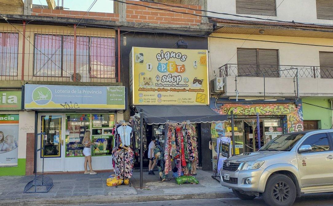 El local comercial principal, actualmente en funcionamiento como pet shop, se compone de una amplia vidriera al frente, un espacio principal de atención al público y un baño completo.