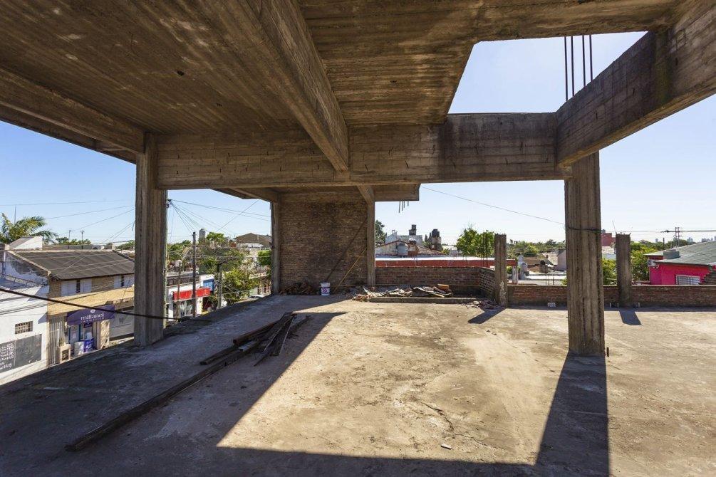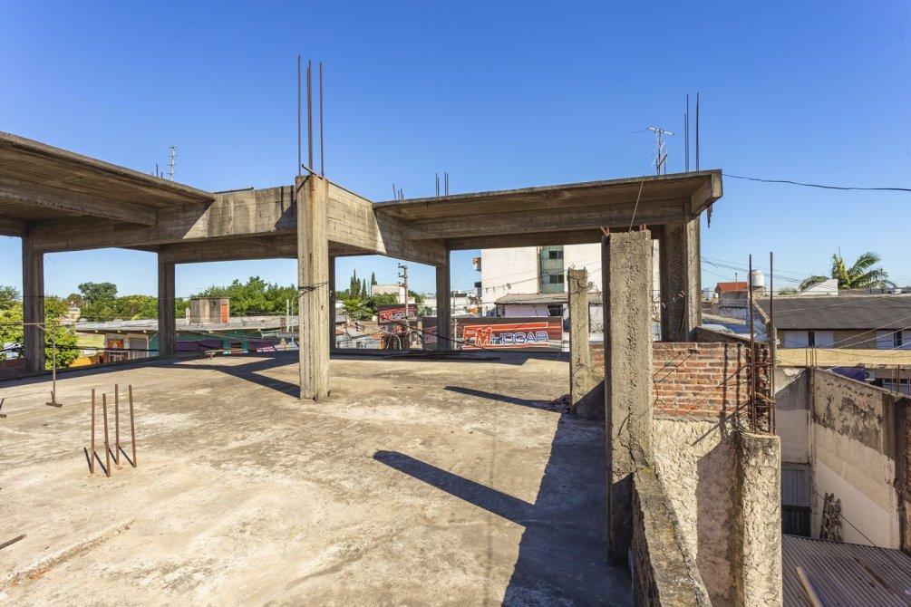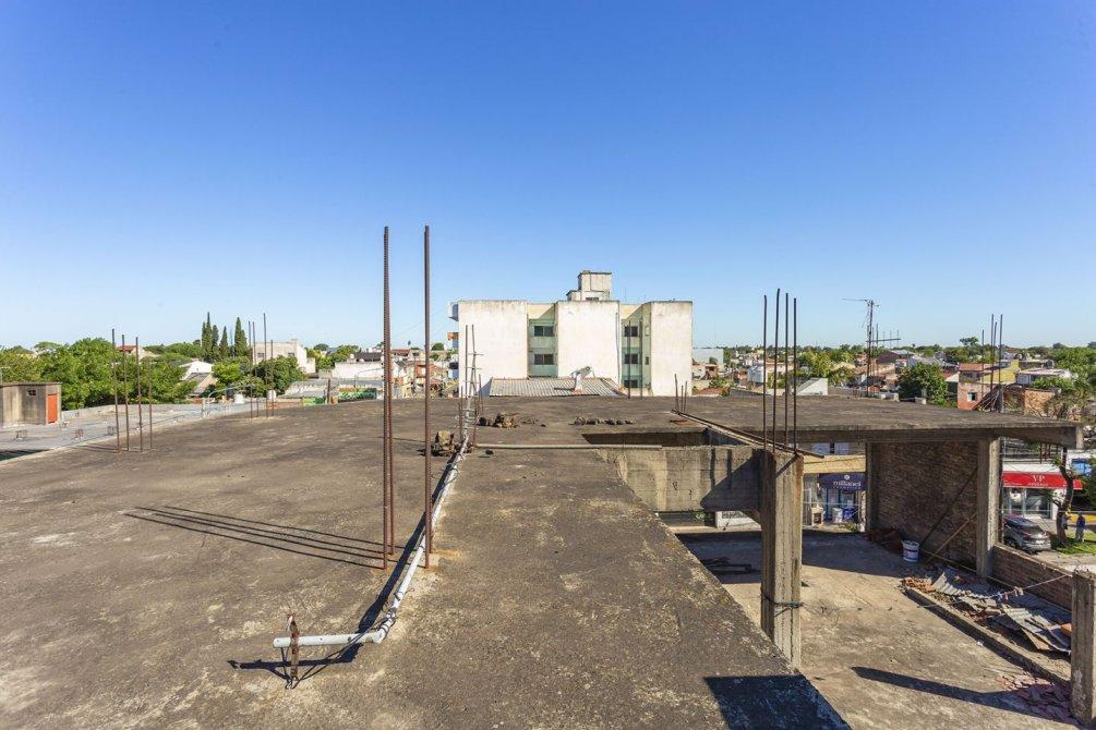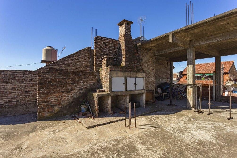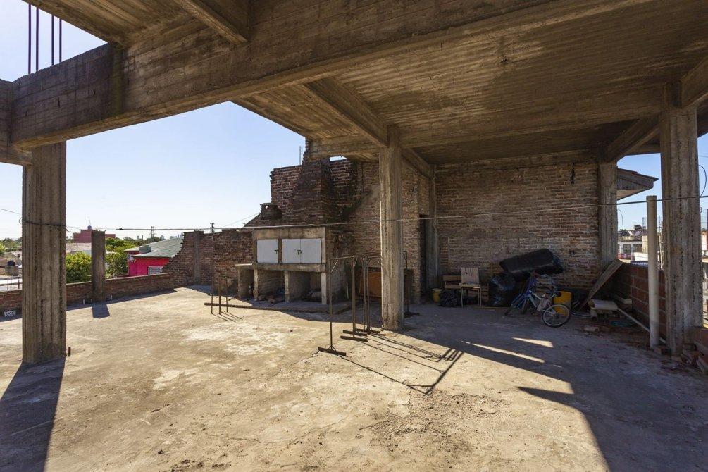 A través de un portón lateral, se accede a un amplio patio con espacio para lavarropas y, mediante escalera, al segundo piso, donde se encuentra una construcción en curso con sector de parrilla y terraza transitable.