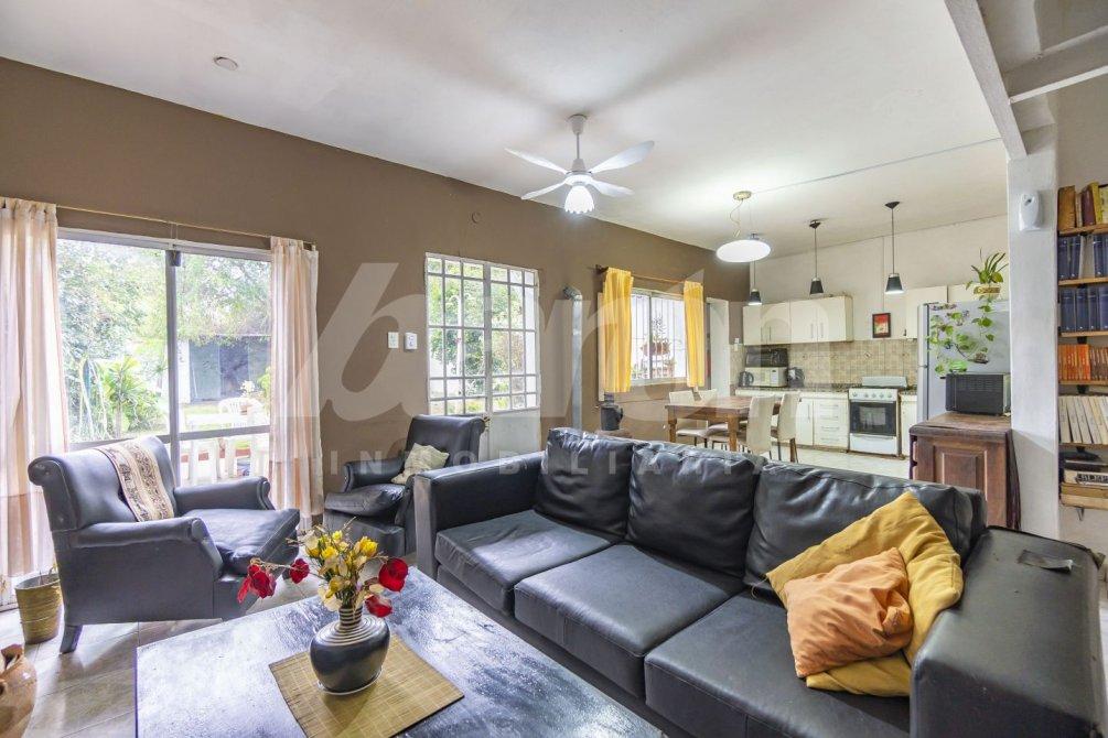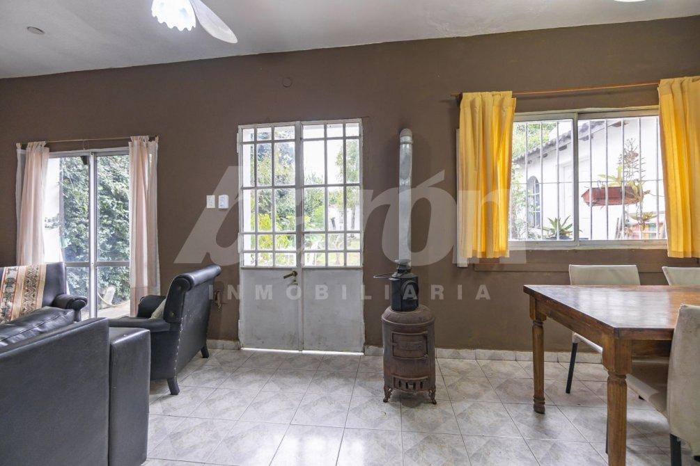 Al ingresar, un hall de entrada con pisos cerámicos nos da la bienvenida y conduce a un amplio living-comedor, un espacio luminoso que cuenta con salamandra y ventilador de techo, ideal para disfrutar en familia.
