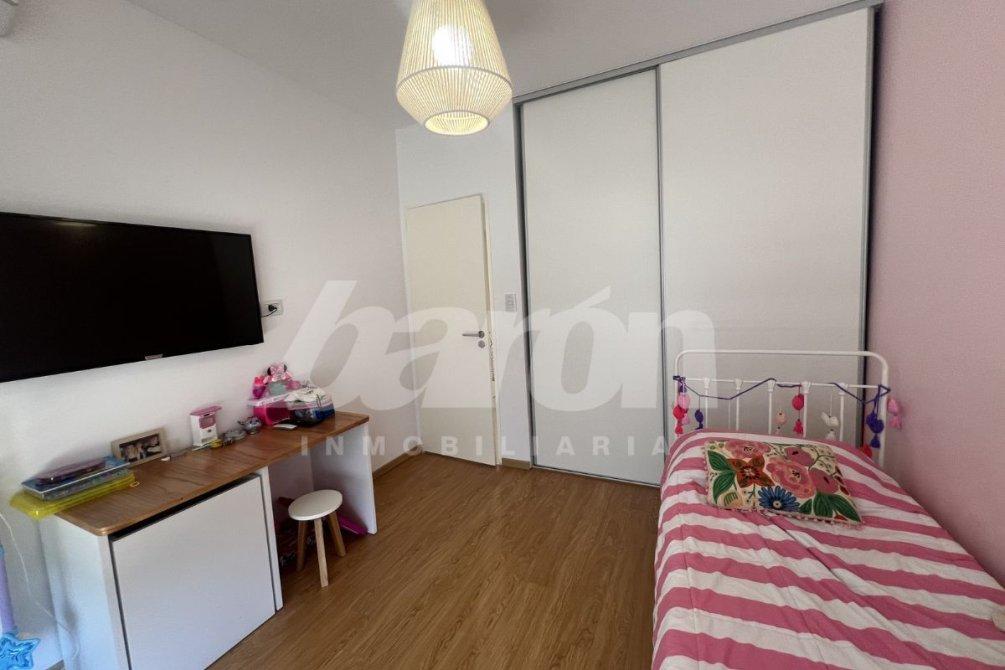 El dormitorio principal se presenta en suite, con placard con puertas espejadas y excelente iluminación natural.