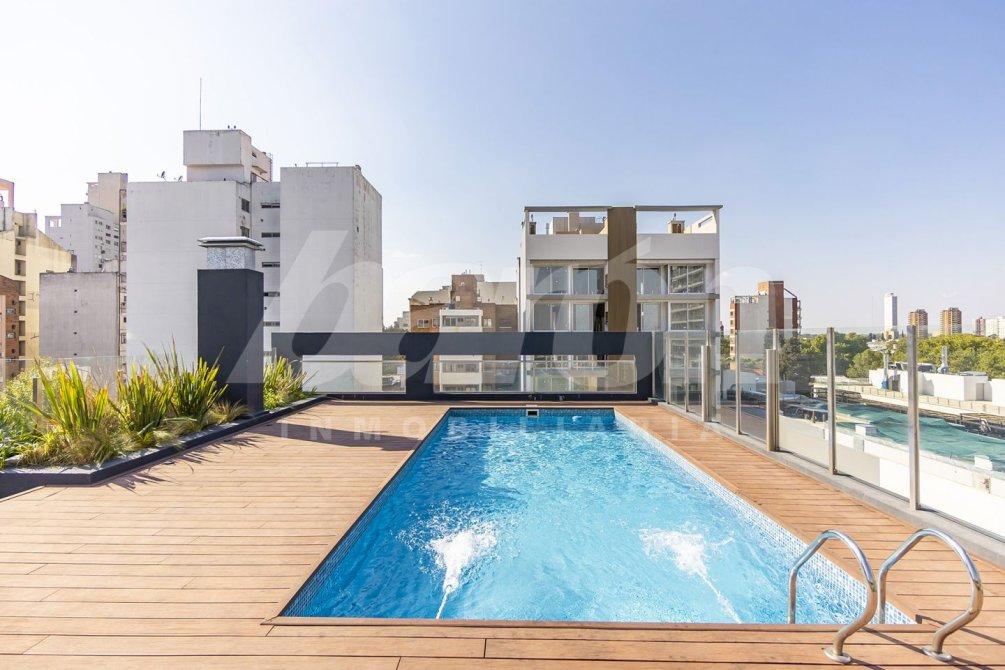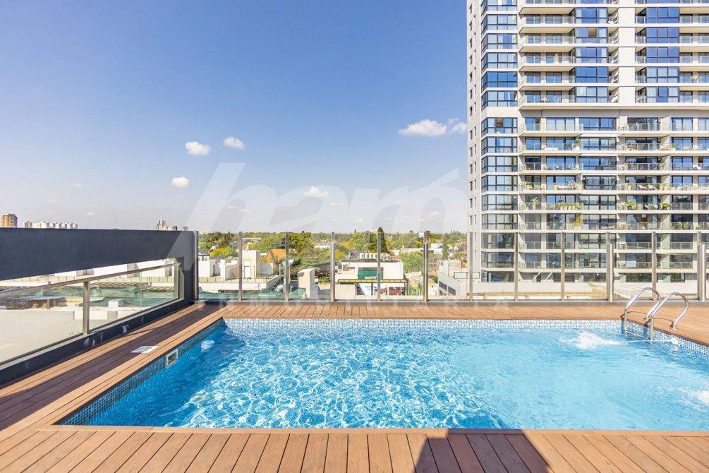 El edificio ofrece amenities de primer nivel, como cámaras de seguridad, SUM totalmente equipado con cocina y toilette, y en el último piso, un espacio verde con solárium, piscina con vista panorámica y toilette de uso común.