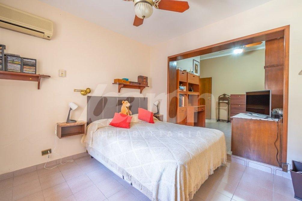 En el contrafrente, la propiedad ofrece un amplio fondo parquizado con parrilla, piscina con bomba y filtro automático, y un quincho con espacio de guardado, ideal para reuniones familiares y sociales.