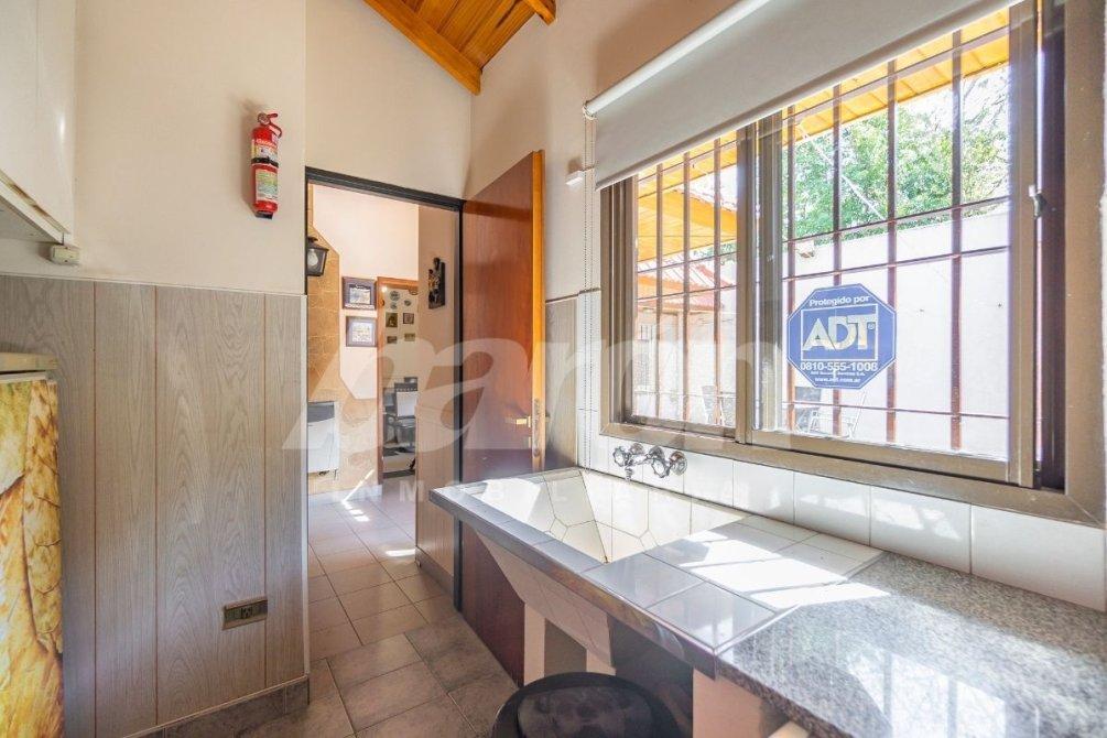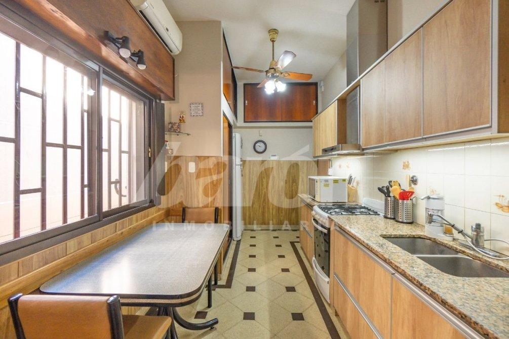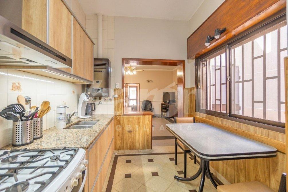 La cocina, completamente equipada y recientemente renovada, dispone de muebles bajo y sobre mesada y se integra a un amplio living-comedor, que constituye el corazón de la vivienda.