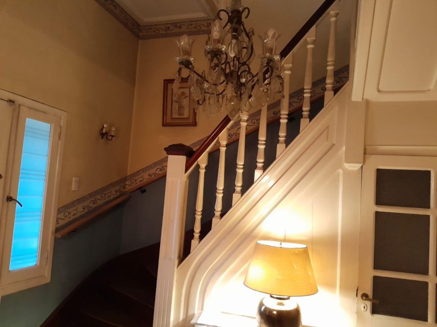 Porch, Hall de entrada, Living y Comedor, Toilette de recepción, muy amplio Estar y Comedor diario, Cocina muy bien equipada con sector de Desayunador con salida directa a muy amplia Galería semicubierta. Dependencias de Servicio. Parrilla, Pileta de natación y Cochera cubertas para 2 o 3 autos y entrada para varios más.