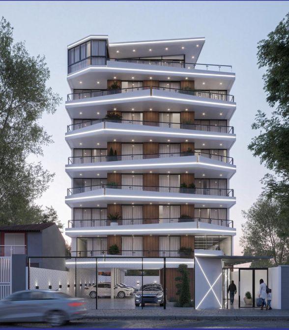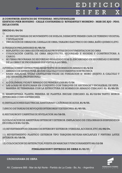 El mismo se ubica entre medianeras,en un terreno con medidas de 15 metros del frente y 40 metros de fondo. En este se emplazara un edificio de viviendas multifamiliares con calidad en diseño y detalles de categoria, lo cual hacen de este una excelente propiedad para vivir, no solo por estas cualidades mencionadas a continuación,sino también por su excelente ubicación con vista al muelle de pescadores de la localidad de Mar de Ajo, sobre la icónica calle Costanera, pudiendo de esta manera apreciar el mar en todo momento.
