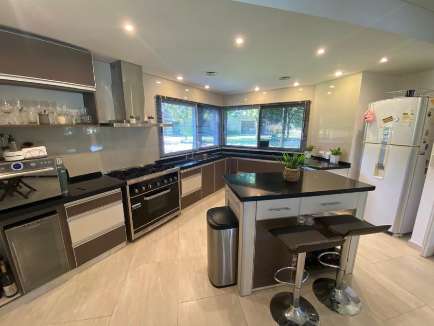 MAGNIFICA RESIDENCIA construida en dos plantas sobre un amplio lote de 48 metros de frente,  ubicada en el barrio mas destacado de San Vicente,  Jardín al frente, PB:  acceso a la propiedad por puerta doble,  recibidor,  Amplio Estar comedor con  vista al parque, toilette de recepción,  cocina comedor diario, ( muebles de bajo y sobre mesada, vista al parque ) isla de apoyo, lavadero,  2 dormitorios c/placard,  PA:  Amplio recibidor que balconea al Estar comedor,  4 dormitorios c./plac. ( principal muy amplio en suite con vestidor ),  Dependencia y baño de servicio, 2 baños,