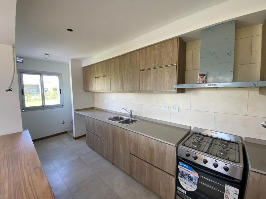 BARRIO CERRADO BELLEVILLE, ubicado muy cerca del centro comercial de Canning,  se trata de una excelente casa A ESTRENAR y se compone de: Jardín al frente,  Recibidor,  Estar comedor,  cocina con mueble de bajo y sobre mesada, artefacto de cocina, lavadero,  toilette de recepción, 3 dormitorios con placard ( principal con vestidor ), 2 baños completo,  fondo libre, parrilla, entrada de auto semicubierta. El barrio cuenta con suministro de gas natural, Red cloacal y seguridad las 24 horas.  calefacción individual.