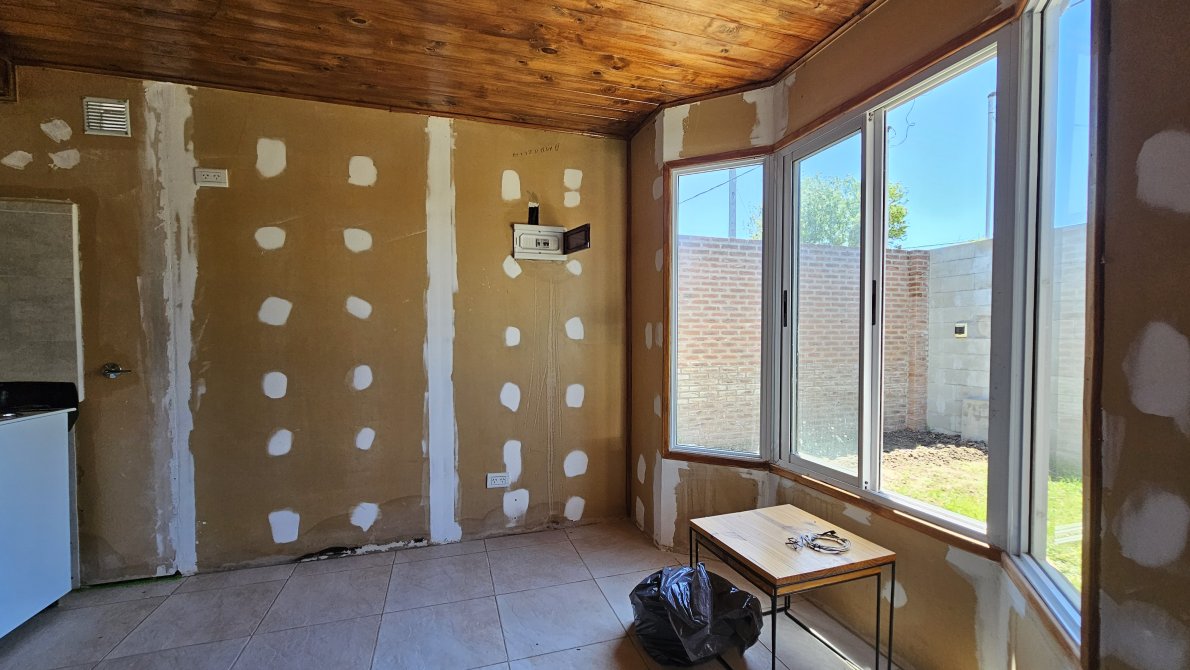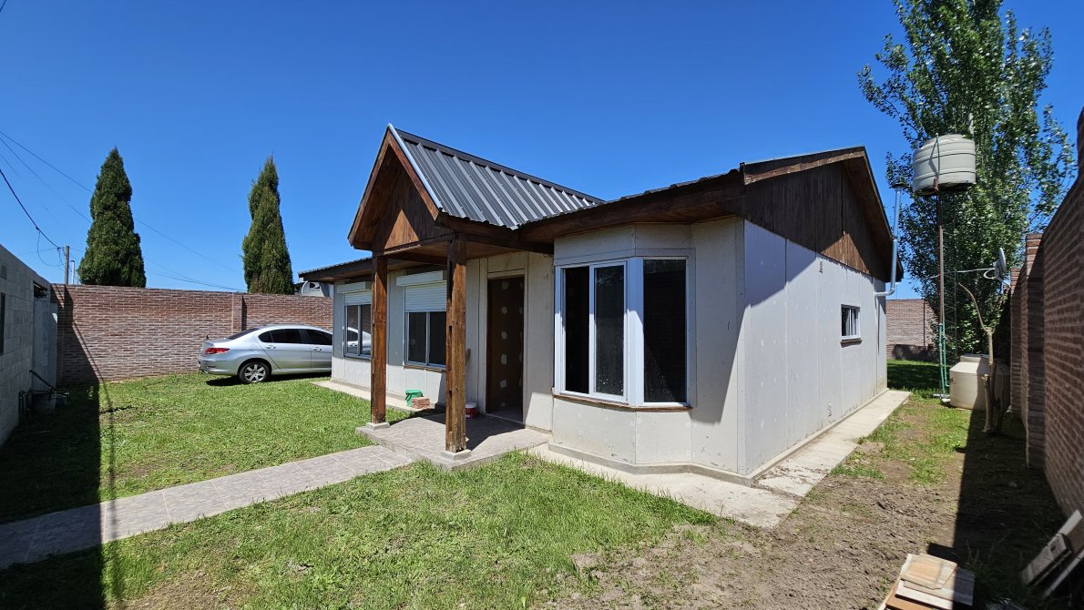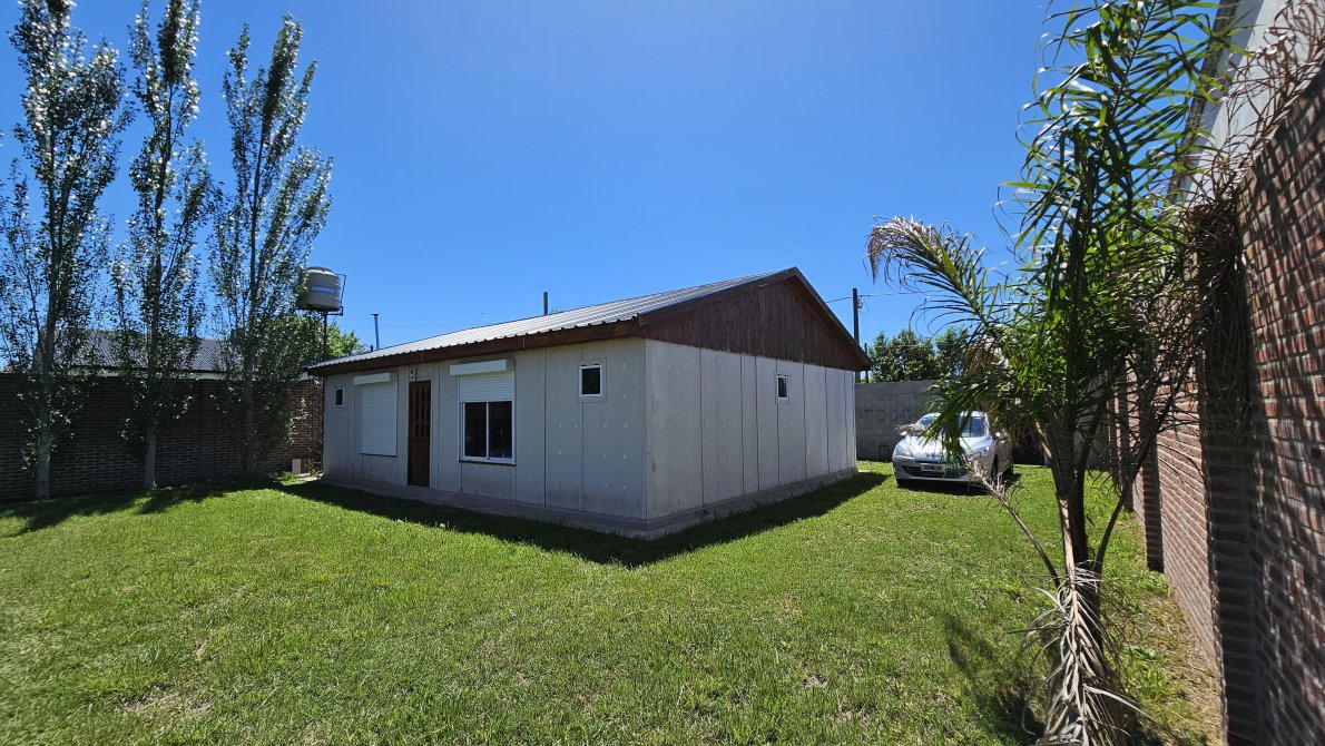 Sobre un TERRENO de 17 metros de frente por 38 metros de largo està construida esta excelente casa prefabricada de muy buena calidad, es A ESTRENAR, pasaron varias tormentas y no tiene ni una sola filtracion.