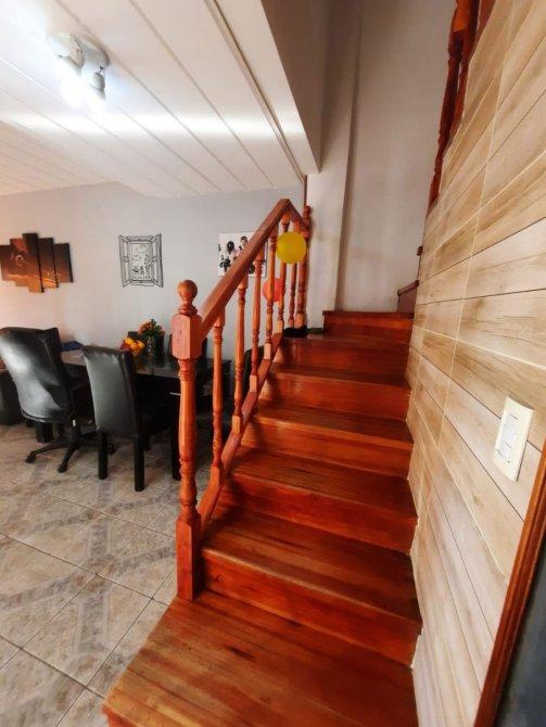 La planta baja posee living-comedor con piso de cerámica y ventilador de techo; cocina con bajo mesada, piso de cerámica y ala cena de pinotea; toilette con inodoro, lavatorio y piso de cerámica. Escaleras de pinotea.