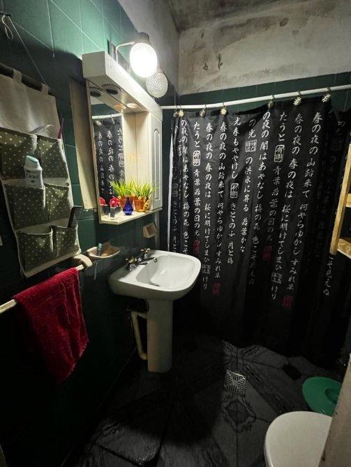 Un local de 6 x 3 con piso de cerámica y baño