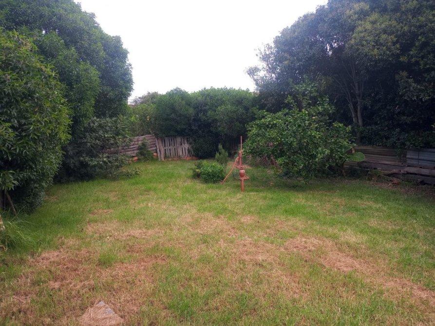 Jardín delantero con trotadora, y en su parte posterior un patio con lavadero semicubierto y un extenso parque con frutales.