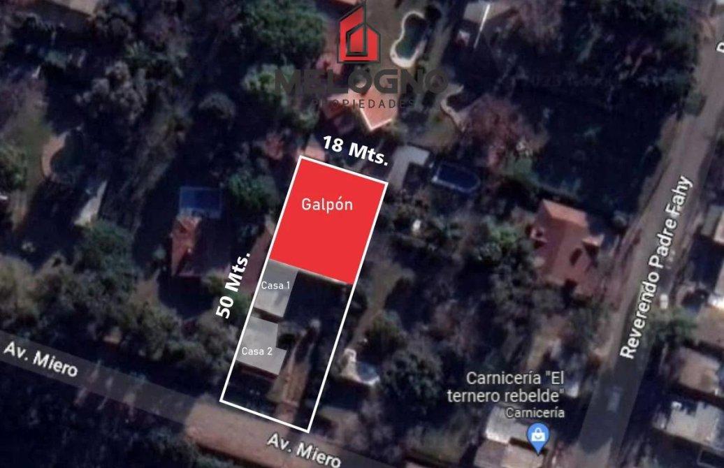 Galpón parabólico con techo de chapa construido en dos plantas; oficinas; vestuarios; portón corredizo. Ambas viviendas están para reciclar. Está ubicada a 20 metros de la calle Reverendo Padre Fhay y a cuadras de la ruta nª 5.