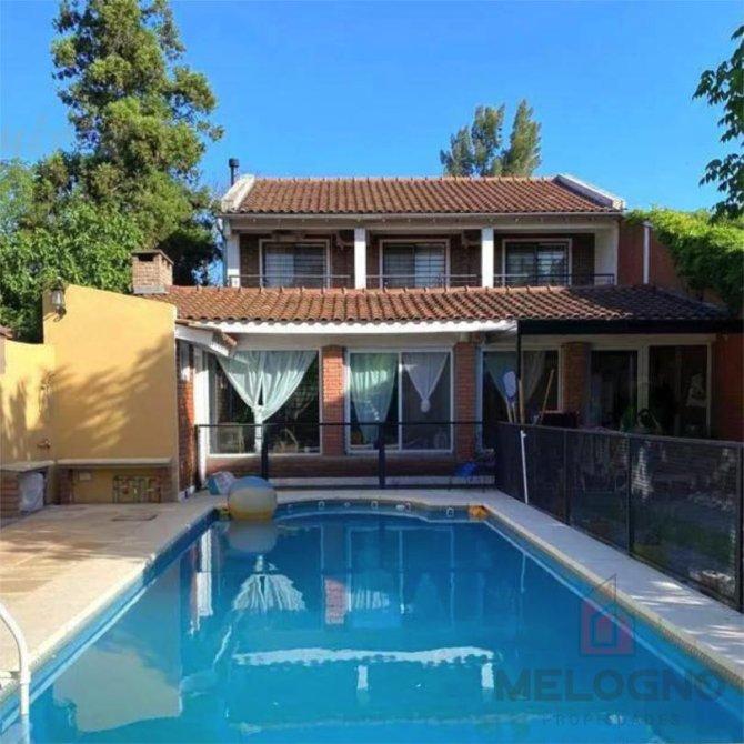 Casa en venta desarrollada en dos plantas, conformada de 7 ambientes en la planta baja se encuentra cocina, living/comedor, dos habitaciones en suite, lavadero con baño y una oficina de estudio. En la planta alta se encuentran 3 habitacion y un baño completo. La propiedad tambien cuenta con un quincho cerrado con parrilla, pileta con rejas, cochera con capacidad para 3 autos y un galpon. Ademas, la propiedad cuenta con todos los servicios basicos y se encuentra ubicada a 100 metros de Ruta 7, a 300 metros se encuentran supermercados, kioscos, librerías y farmacias. Además, a 500 metros se ubica la comisaría, el Instituto San Francisco de Asís y el registro civil.