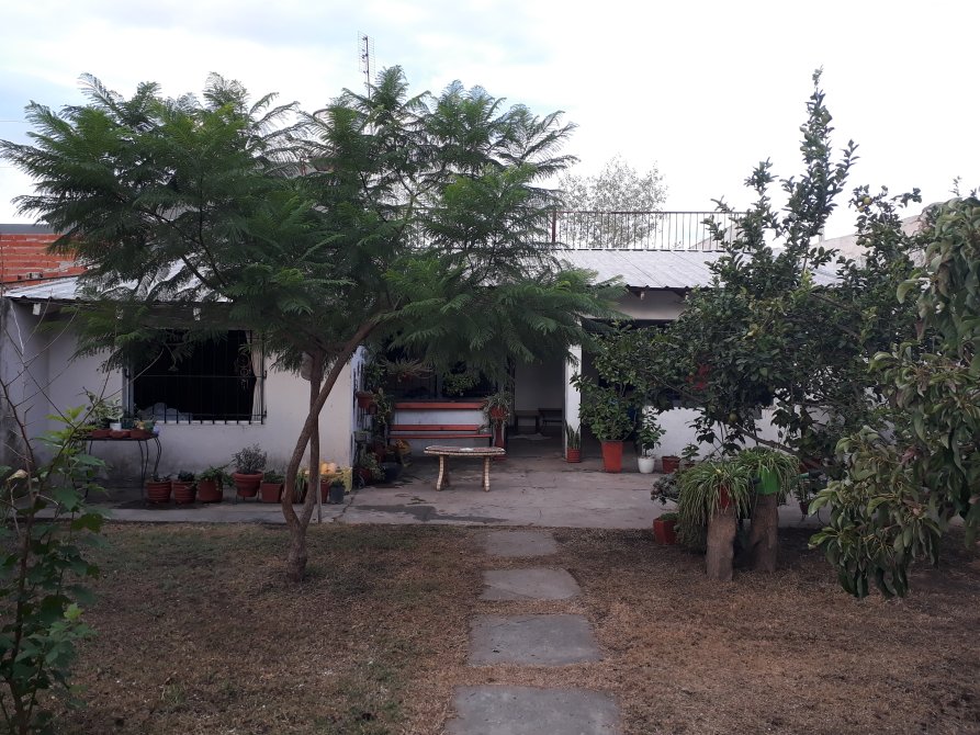 una galería techada y cerrada muy amplia; hermoso jardín con árboles frutales y en su fondo una construcción a terminar y un cuarto de enseres generoso.