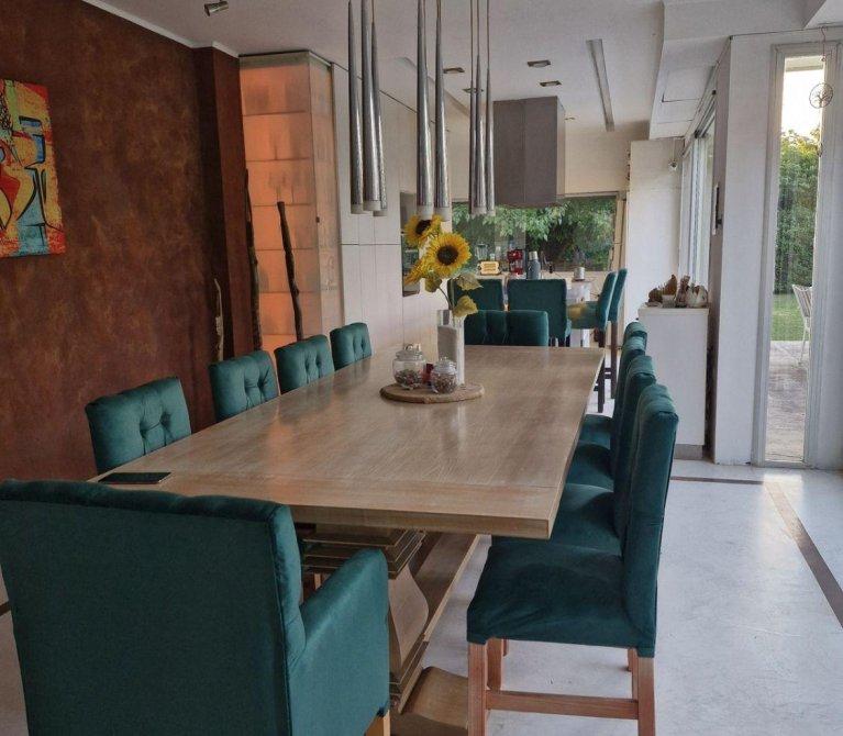 Cuenta con una vivienda de 200 m² cubiertos, distribuida en 2 dormitorios, 3 baños, living-comedor, cocina independiente y espacios de guardado. Además, dispone de 2 cocheras y un extenso parque arbolado.