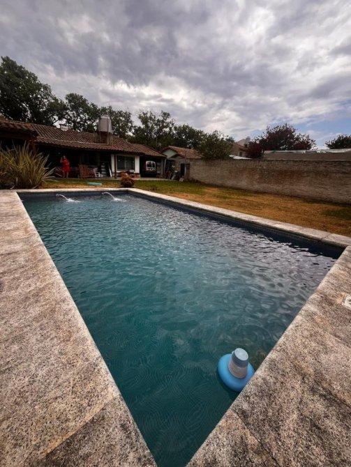 La propiedad también cuenta con garaje cubierto para 2 autos con piso de mosaico granito. Baño externo por pileta con ducha, inodoro, vanitory con espejo, piso  y paredes de cerámica. Quincho semi cubierto con parrilla, mesada, bacha, instalación para lavarropa. Cuarto de herramientos con todo el sistema de pileta y la caldera. Piscina climatizada con 2.30 mts de profundidad. Extenso parque con sistema de riego.