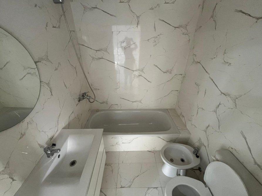 - Baño completo. Bañera y revestimientos imitación mármol de Carrara, que aportan un toque elegante y único