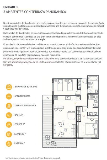 UF1 CONTRAFRENTE ESTE, 3 ambientes; superficie cubierta: 72,05 M2; superficie semi-cubierta:22,47 M2; superficie total:94,52 M2; VALOR AL CONTADO:U$D: 99.000 /VALOR FINANCIADO U$D 117.500 *CONSULTE ANTICIPO Y CUOTAS*