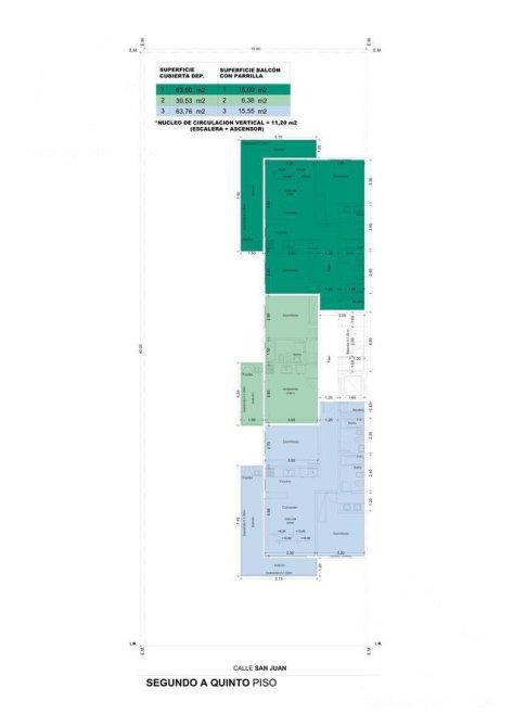 Torre "" se compone de seis pisos, hasta el 5to piso se desarrollaran 3 unidades de dos Y tres ambientes con c/ balcones.
