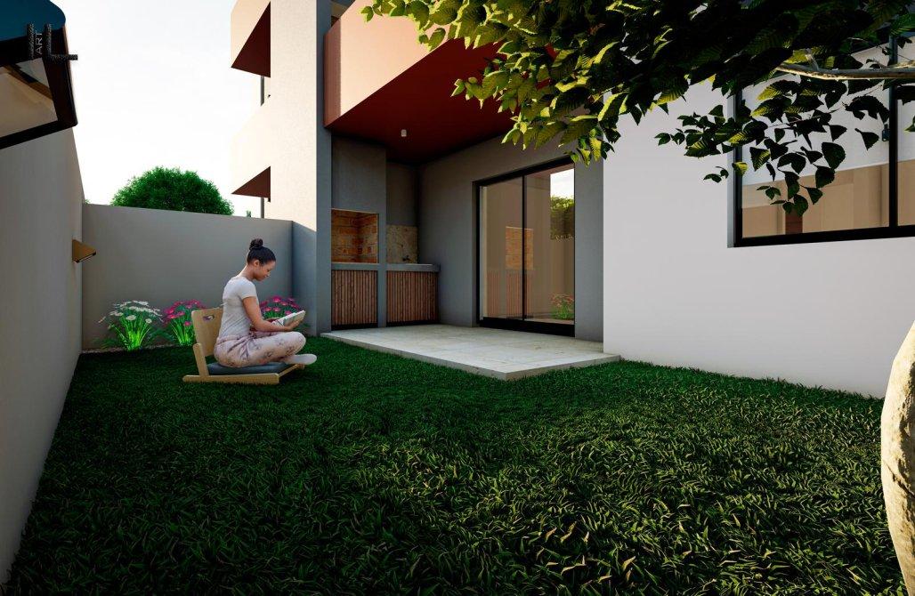 * LOS DEPARTAMENTOS DEL SEGUNDO CUERPO TENDRAN 50 M2., SIENDO QUE LOS DE PB. CONTARAN CON PATIO Y JARDIN, LOS DEL PRIMER PISO CON BALCON Y LOS DEL SEGUNDO PISO CON TERRAZA ESCLUSIVA DE 50 M2.