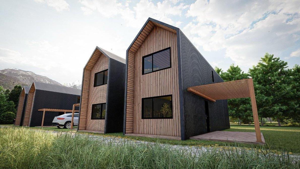 Muros y cubierta: sistema de panelizado TWINSIP. Revestimiento exterior en chapa acanalada negra y SIDING símil madera. Terminación interior placa de MDF ranurada y pintada y / o machimbre nórdico laqueado.-